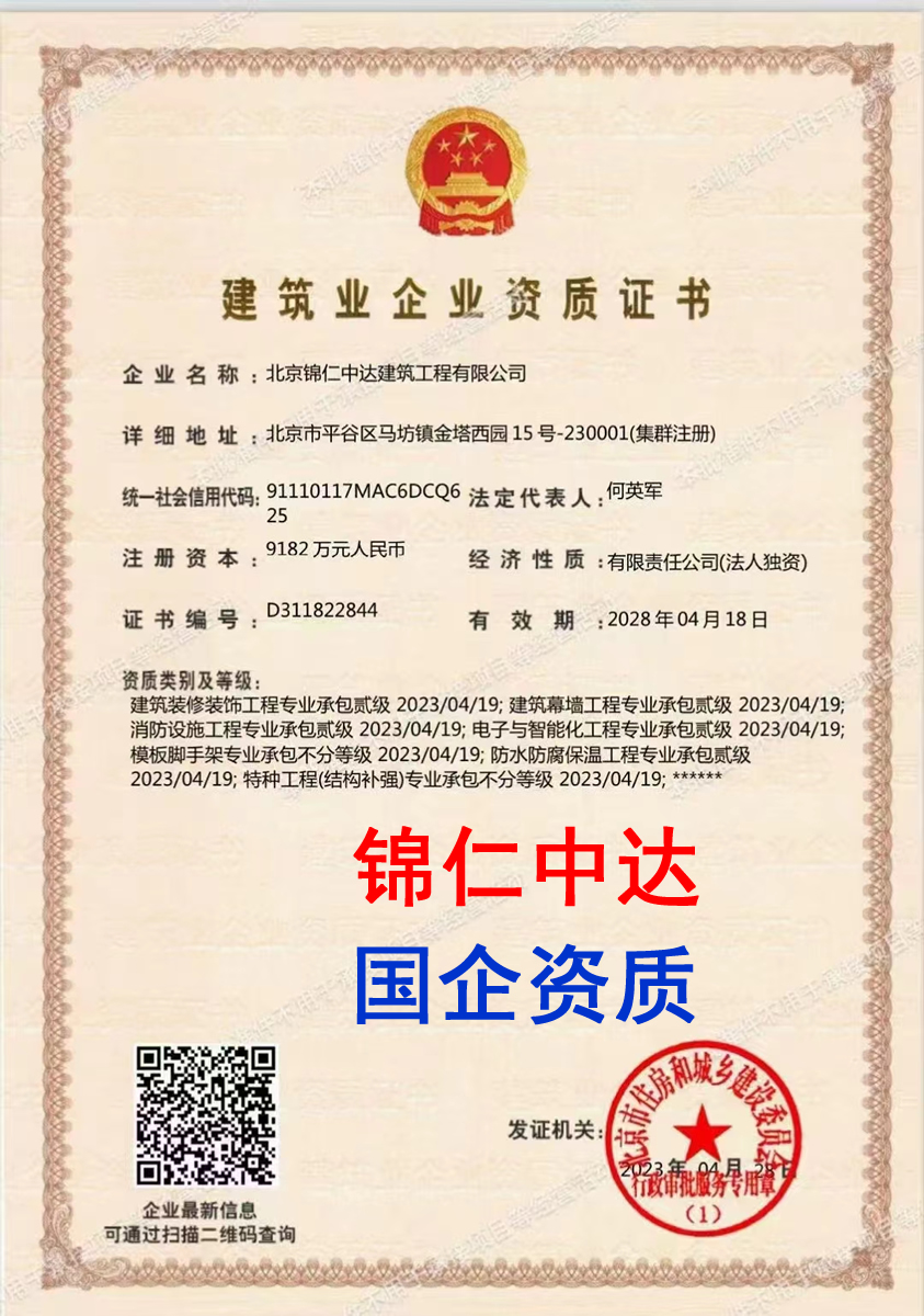 北京錦仁中達建筑工程有限公司資質范圍及等級: