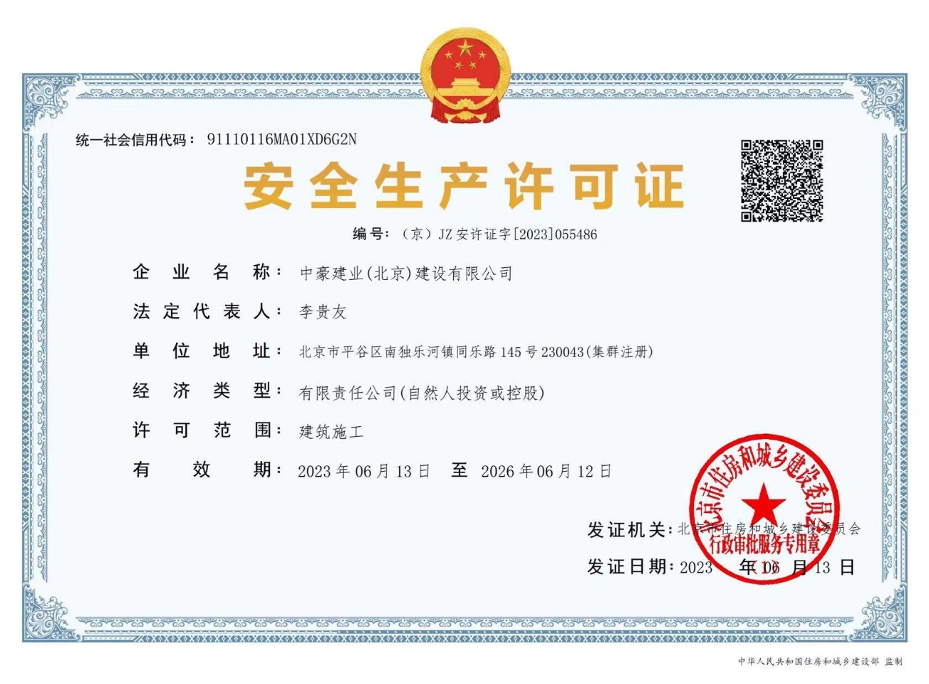 中豪建業(yè)(北京)建設(shè)有限公司資質(zhì)范圍及等級(jí):